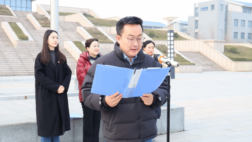 “国旗下点亮青春之光”升国旗主题教育活动在章丘校区图书馆北侧隆重举行。澳门太阳城