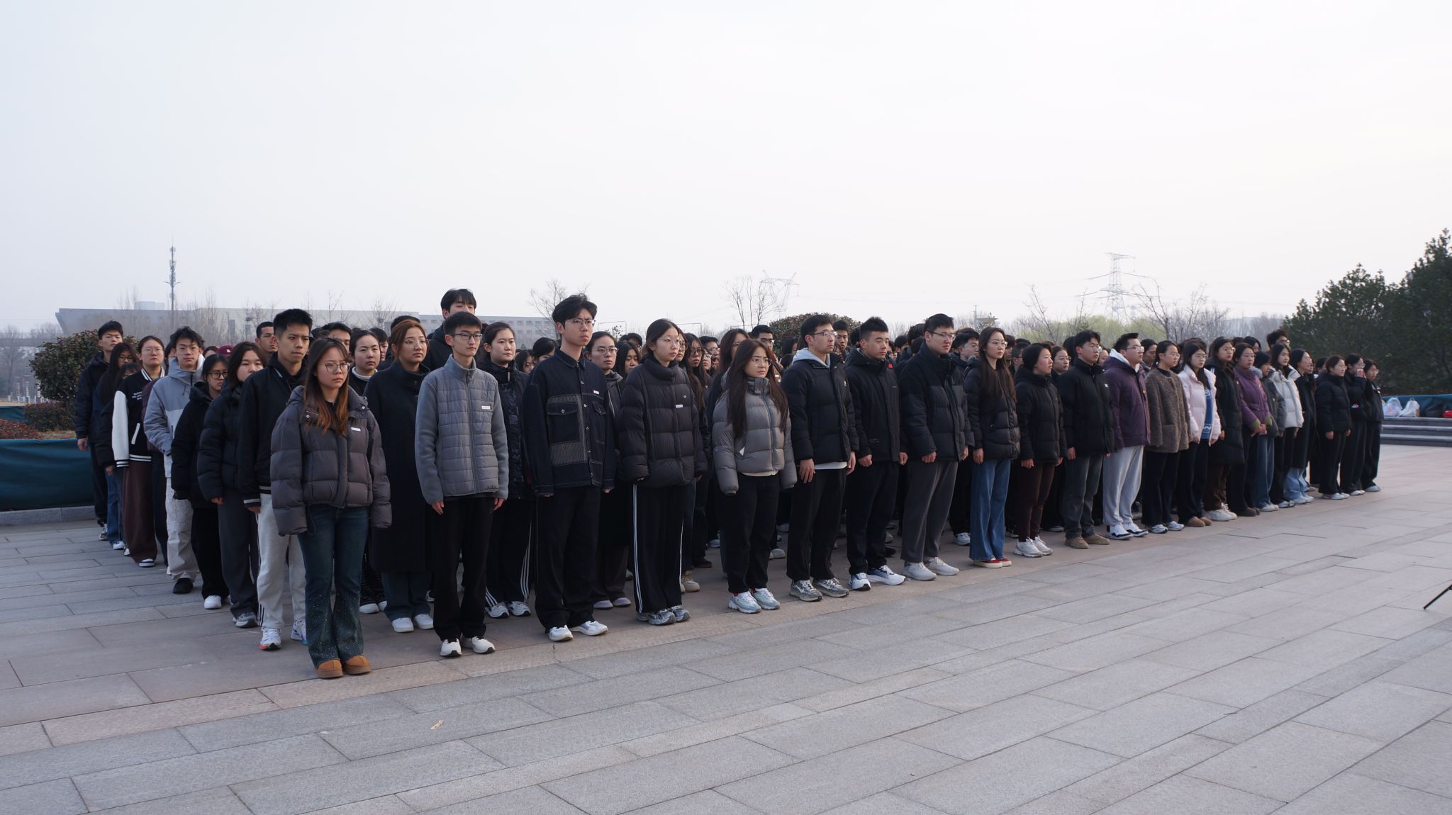 党委副书记滕晖,辅导员曹同锋、李昕鑫、周迪语、刘晋利出席,研究生学生党员及2024级、2025级本科生代表参加。升旗仪式由曹同锋主持。
