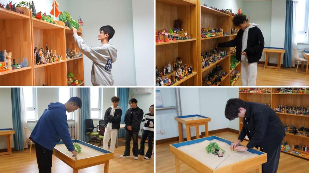 游戏环节结束后,在宋老师的专业引导下,同学们围绕自己的沙盘作品,分享了创作理念、场景构思及其背后的情感故事。真诚的交流不仅增进了彼此的理解,更引发了深刻的情感共鸣,有效缓解了日常学习与生活中的心理压力。
