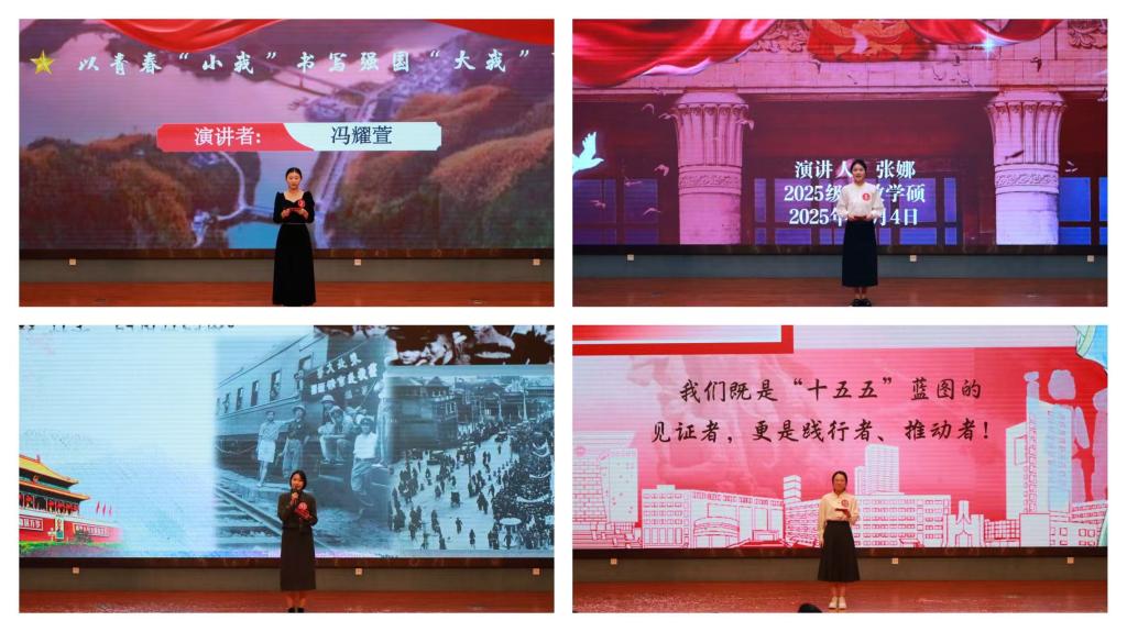 参赛选手深情回顾了“一二·九”运动的峥嵘岁月,以饱含情感的演讲唤醒历史记忆,致敬先辈奋斗精神;通过讲述英雄杨靖宇和沂蒙精神,生动诠释了“一二·九”精神在新时代的延续与焕新;结合工匠精神、九三阅兵、全运会风采等时代主题,展现了当代青年将爱国热忱转化为实干担当的生动实践;紧扣党的二十届四中全会精神,立足“十五五”发展蓝图,畅谈青春理想与时代使命,发出了新时代青年勇担重任、奋进新征程的坚定誓言。两组参赛团队以情景剧的形式呈现了革命先辈的铮铮铁骨与民族大义。