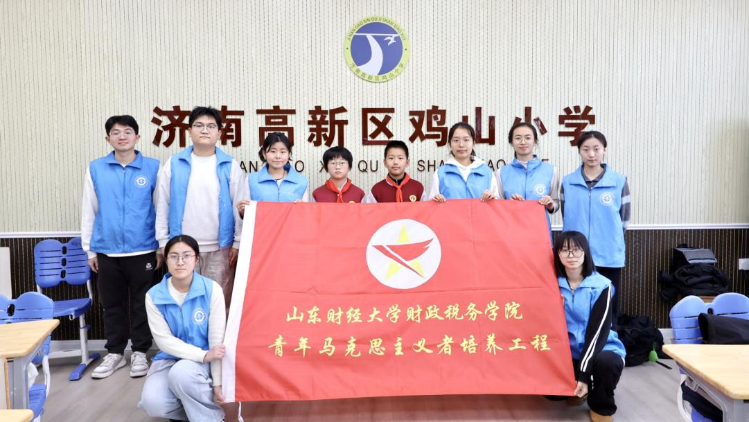 组织学生党员志愿者和青马志愿者前往济南高新区鸡山小学,开展“财税承使命,红税启童心”财税知识启蒙志愿服务活动,以专业实践传递红色财税精神。