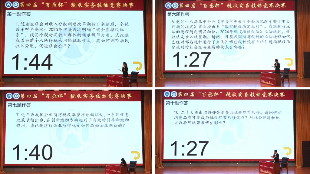 比赛现场紧张激烈,精彩纷呈。上半场抢答环节,选手们思维敏捷、应对如流;下半场案例分析环节,各选手紧扣税收实务,精准剖析、策略清晰,展现出扎实的专业功底与良好的逻辑分析能力。活动中,宣讲团宣讲《财聚国脉·税润初心》与舞台剧《课堂一梦入税史》穿插上演,以艺术形式诠释财税人的使命担当与税制演进历程,为大赛增添了浓厚的文化氛围。