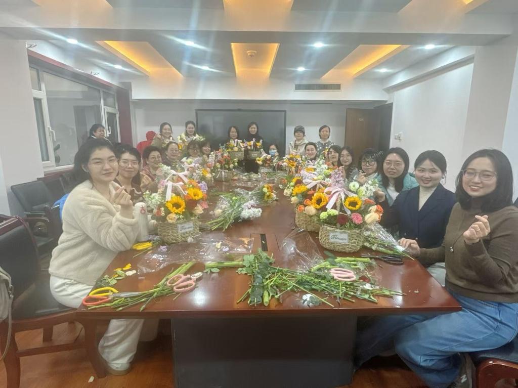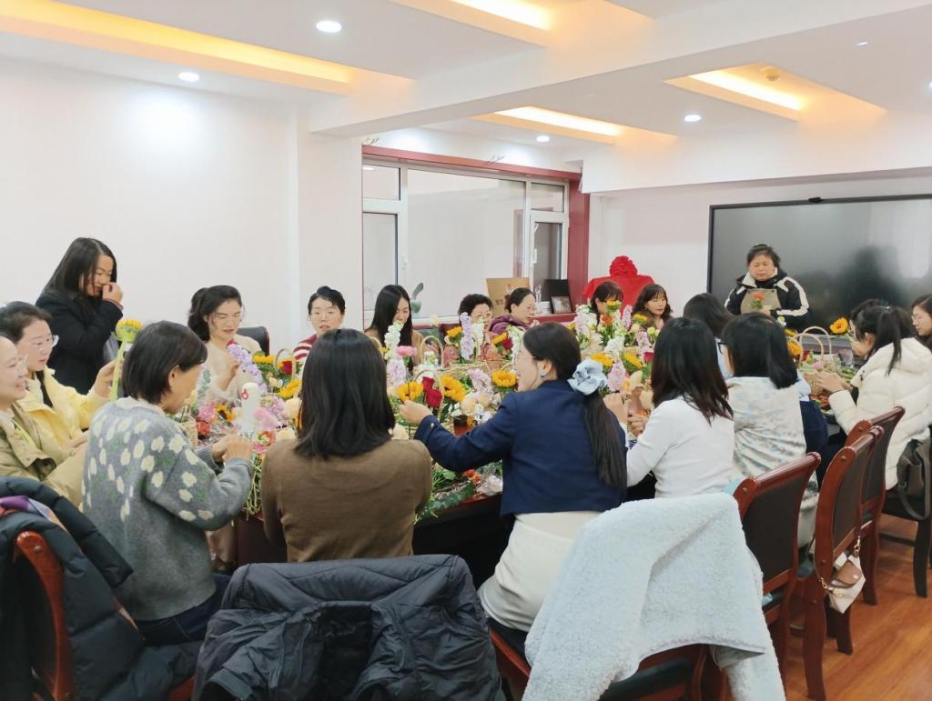 在国际劳动妇女节到来之际,3月4日下午,澳门太阳城 工会在办公楼816会议室举行插花活动,澳门太阳城 女教职工参加。